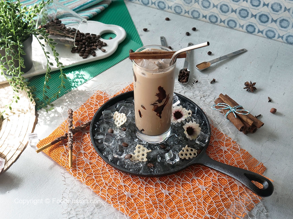Blender jug mein doodh,laung powder,cayenne powder,darchini powder,cheeni,instant coffee aur chocolate syrup dal ker ache tarhan blend ker lein.