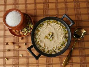 Bowl mein dry milk powder,badam aur pista dal ker ache tarhan mix ker lein (makes 8 cups approx. 1 kg).