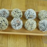 Khajoor Balls (dates) coated with coconut and sesame seeds