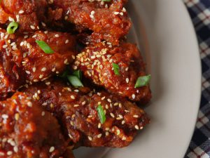 Marinated chicken pieces ko corn flour mein ache tarhan coat ker lein.