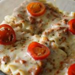 Baking dish mein red sauce with mince dal ker pheela lein.