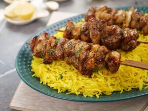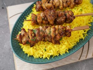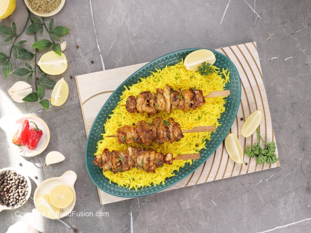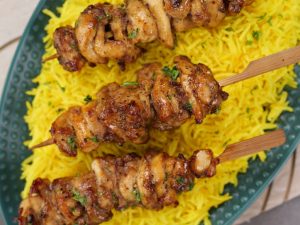 -Apply prepared butter glaze from all sides on chicken skewers & serve!