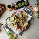 Thread marinated mutton on wooden skewers (makes 11-12).