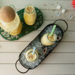 Serving bottle mein mango jelly cubes,tayyar doodh aur badam dal dein.
