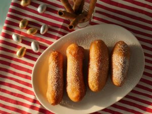 -Grease working surface & rolling pin with oil,place dough,make a log shape & cut into 3 portions.
