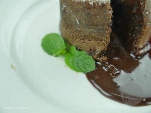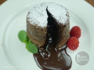 -Add mixture in ramekins/bowls. Add bake at 200 C for exact 14 minutes. Cake should have firm side and the center remains soft. Let stand for a minute and invert the cake on separate plates while it’s warm.