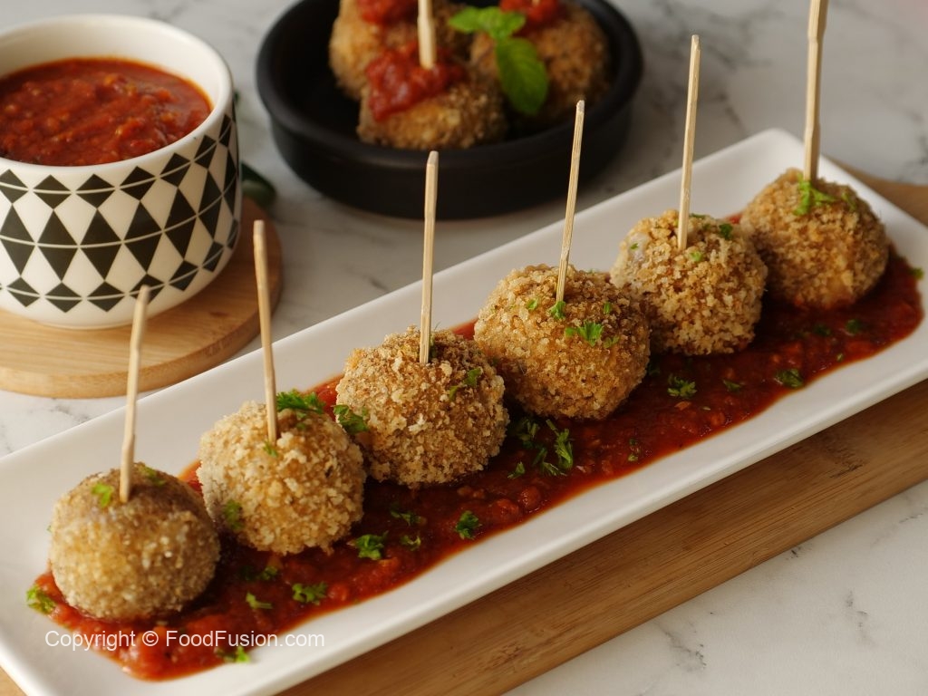 Mozzarella Balls with Marinara Sauce to go with it. A perfect game night snack for you to enjoy with family. #HappyCookingToYou #FoodFusion #Dashi