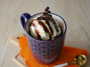 Vanilla ice cream aur chocolate syrup sa garnish ker ka serve karein.