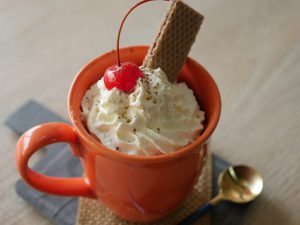 Garnish with whipped cream,cherry,wafer & serve.