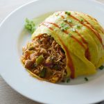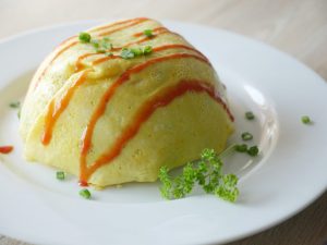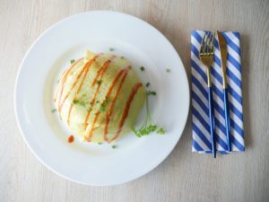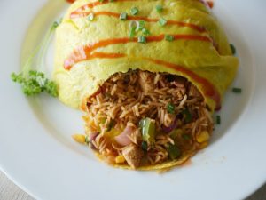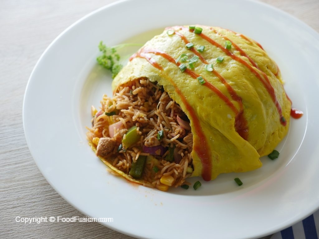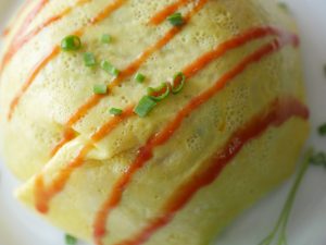 In a bowl,place cooked omelet and cooked rice & fold all sides.