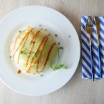 Bowl ko hata lein,tomato ketchup aur hara pyaz sa garnish ker ka serve karein.