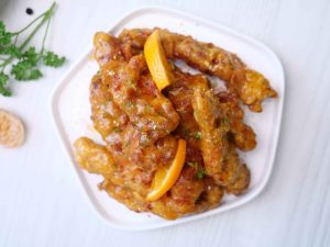 -In a bowl,add chicken,orange zest (1 tsp),lemon zest (1/4 tsp).