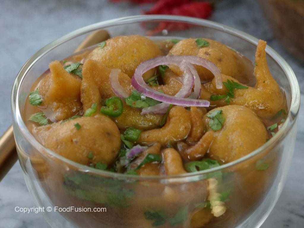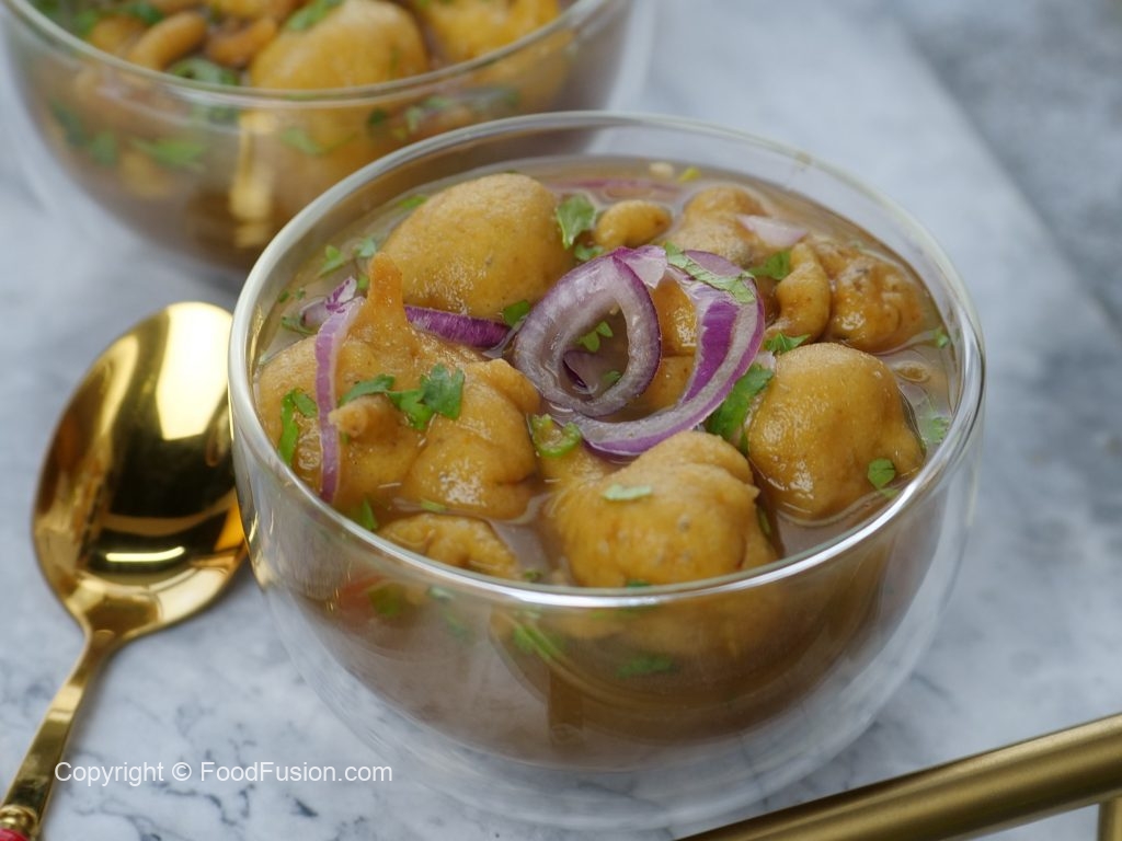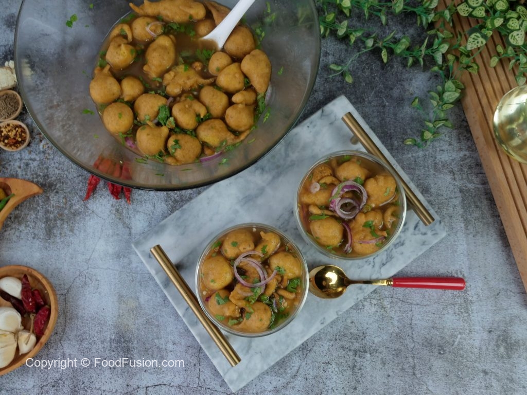 -In a wok,heat cooking oil and fry phulki (pour with the help of spoon) on medium flame until golden brown & crispy.