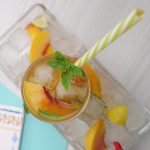-In a serving glass,add ice cubes,peach slices,prepared green tea (3/4 cup),prepared peach mixture (1/4 cup),mint leaves & stir.