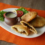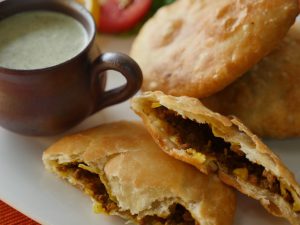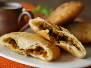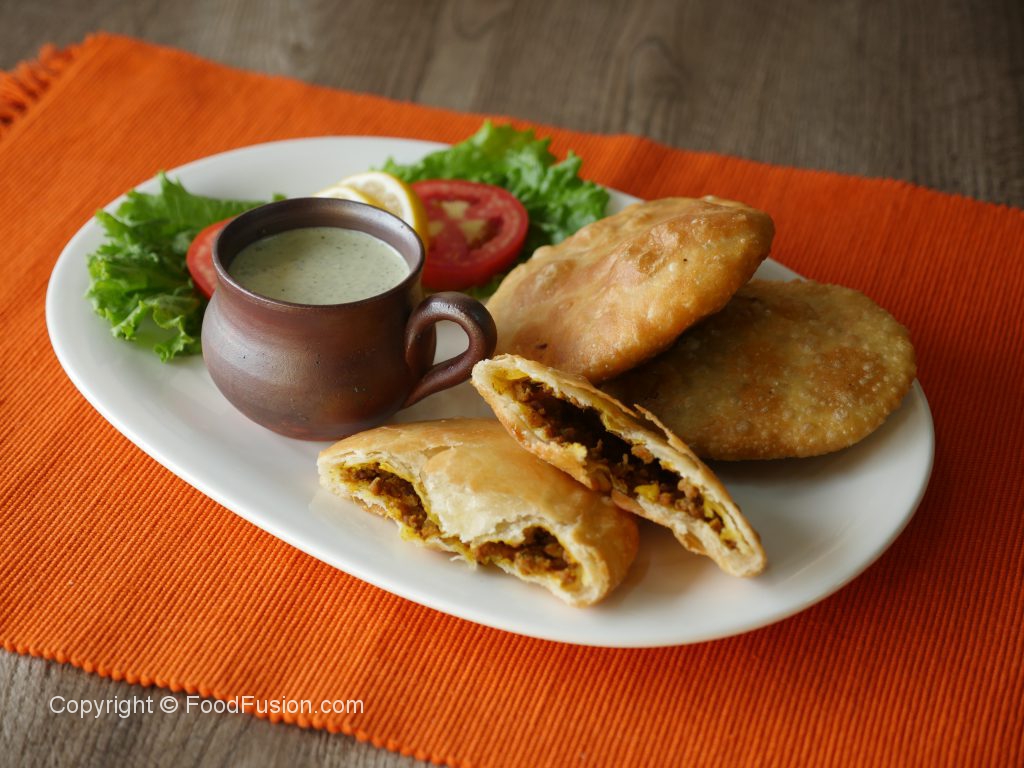 Dough ka bech mein qeema filling rakh dein aur tamam edges ko press ker ka seal ker dein.