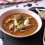 In serving dish,add nihari,cilli oil (tarri),ginger,green chilli,fresh coriander,lemon & serve!