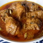 Add yogurt,ginger,garlic,black peppercorns,mace,green cardamom,cloves,cinnamon sticks,bay leaves, cumin seeds,red chilli powder,turmeric powder,salt,fried onion (crush with the help of hand),cashew paste & mix well.