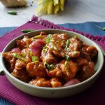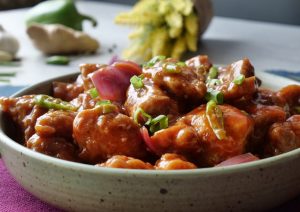 In a bowl,add water,soy sauce,tomato ketchup,hot sauce,black pepper powder,salt,red chilli powder, chicken powder,cornflour,whisk well & set aside.