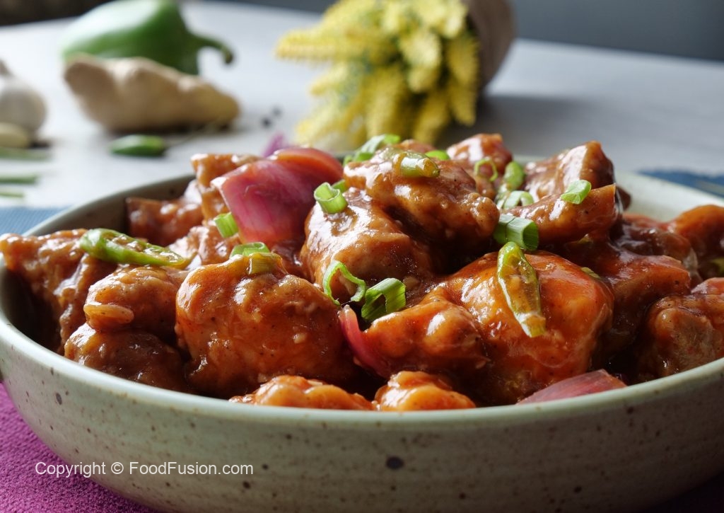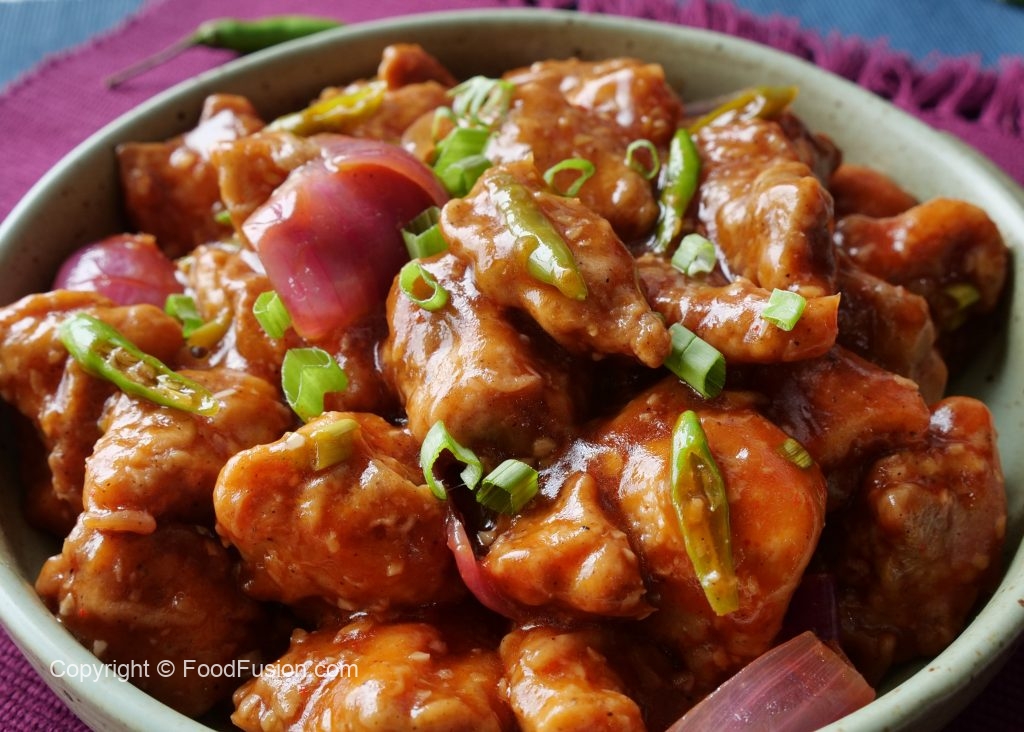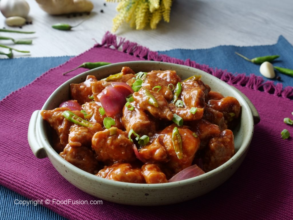 In a wok,heat cooking oil,fry marinated chicken on medium flame until golden brown.