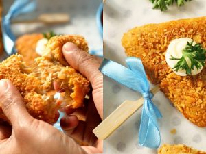 -Take whisked eggs in 1 flat bowl and bread crumbs in another flat bowl.