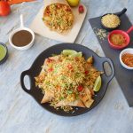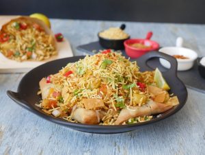 Add prepared bhel puri,papri,fresh coriander,green chilli,prepared special green chutney,prepared amchur ki khatti meethi chutney,chaat masala,nimco sev,lemon juice,red chilli crushed & serve!