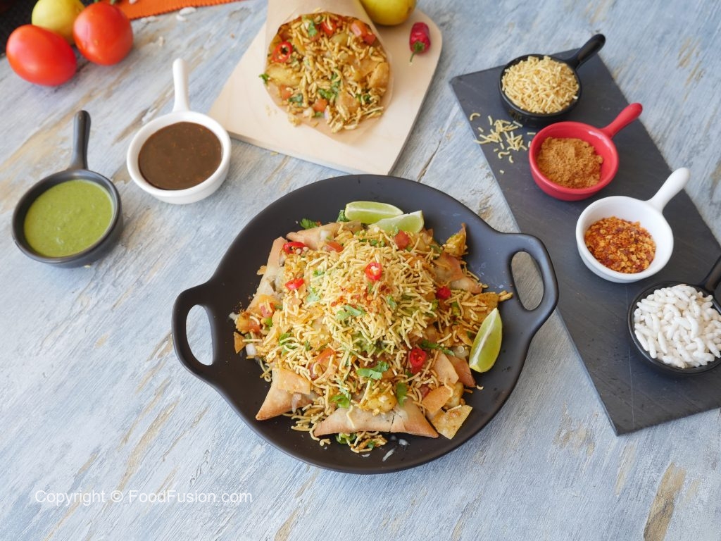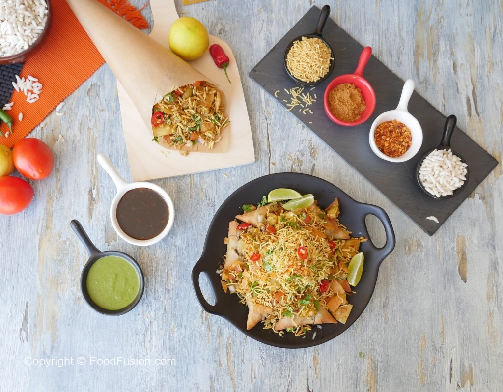 Bowl mein murmuray,tamatar,pyaz,aloo,hara dhnaia,hari mirch,paprika powder,namak,chaat masala, lal mirch crushed,tayyar amchur ki khatti meethi chutney,tayyar special green chutney aur lemon juice dal ker ache tarhan mix ker lein.