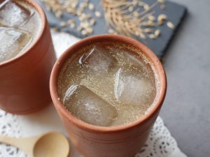 In serving glass,add jaggery,sattu,water,lemon juice,black salt and mix thoroughly.
