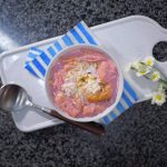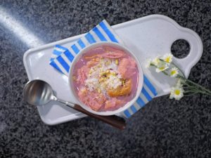 -In a cooking pot, add milk, bring it to boil, add prepared pink tea concentrate, mix well then add pink food color & mix well.