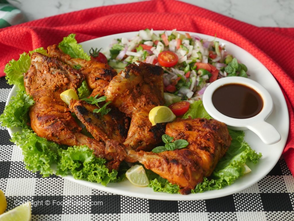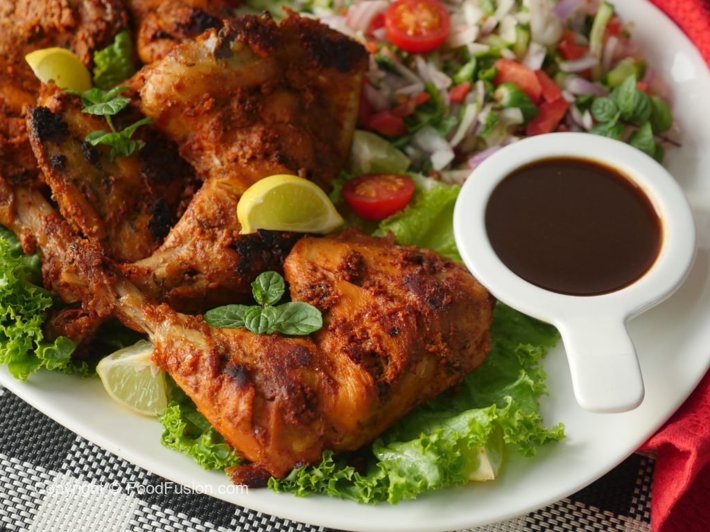 Smoky tandoori chicken ko salad or imli k sauce k sath serve karein.