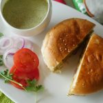 On top bun,add & spread bun kabab chutney,cover and again fry bun kabab.
