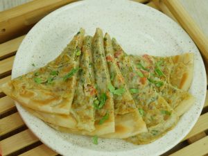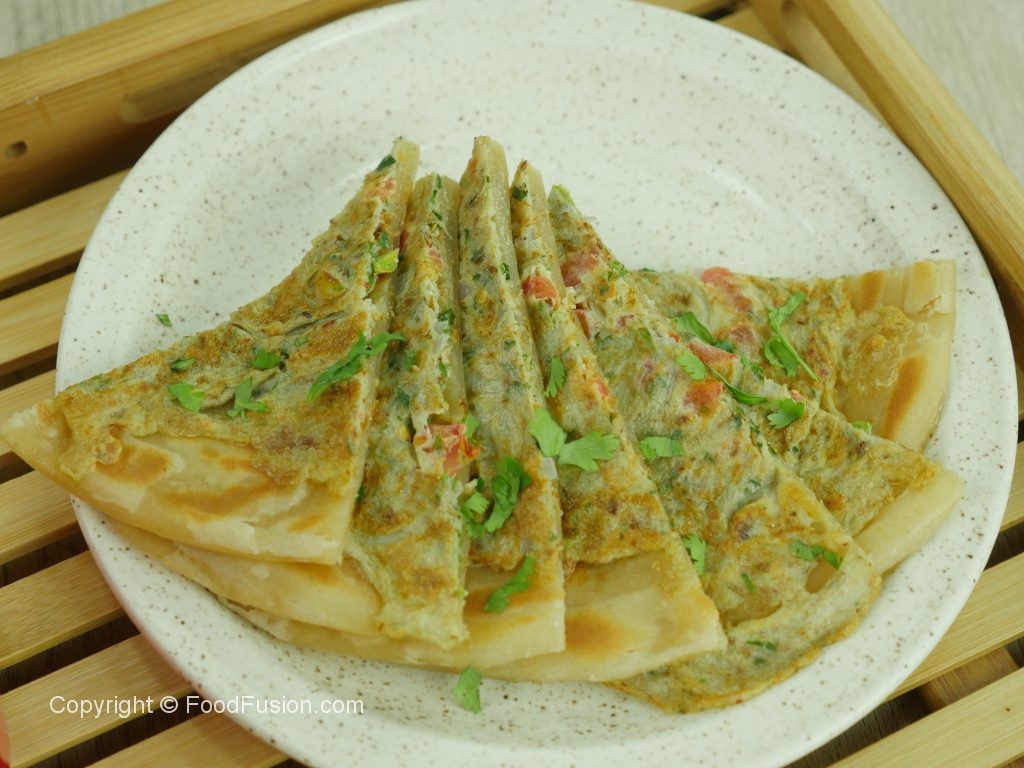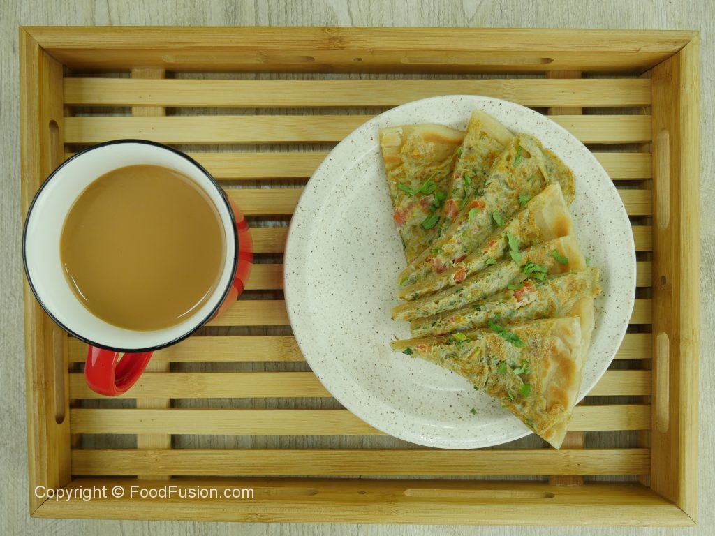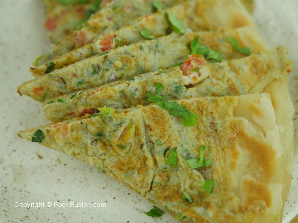 On griddle,add cooking oil and pour egg mixture and cook for few seconds then place cooked paratha over it,press gently and cook from both sides until done.