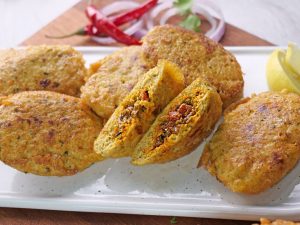 -Take 50g of kabab mixture, shape it like a leaf. (Makes 28-30)
