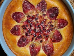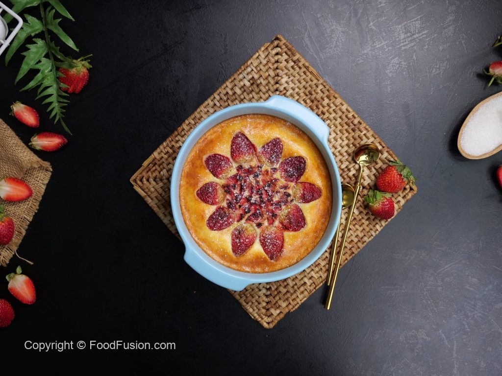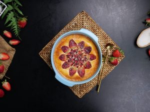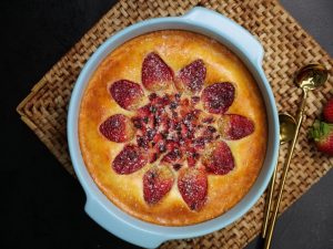 -Decorate with strawberries & air fry at 160C for 25 minutes.