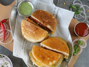 -Half mein cut karein aur tayyar hari chutney aur tomato ketchup ka saath serve karein!