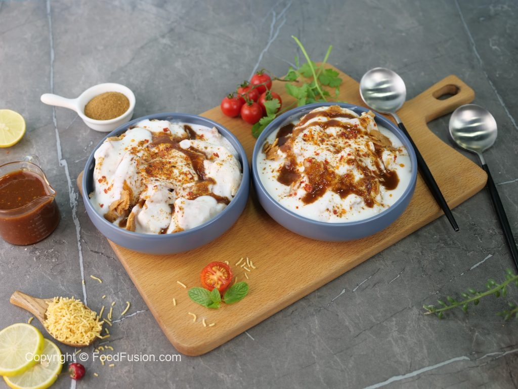-Add papdi,dahi bara masala,prepared dahi,dahi bara masala,khatti meethi chutney & serve!