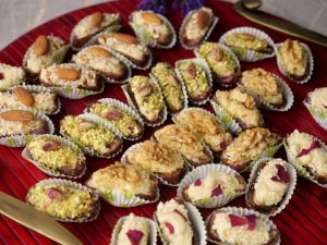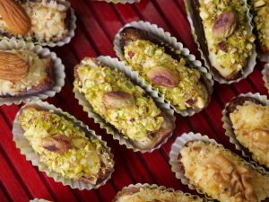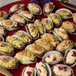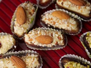 Coat stuffed dates with pistachios,almonds,walnuts & cashew nuts.
