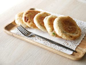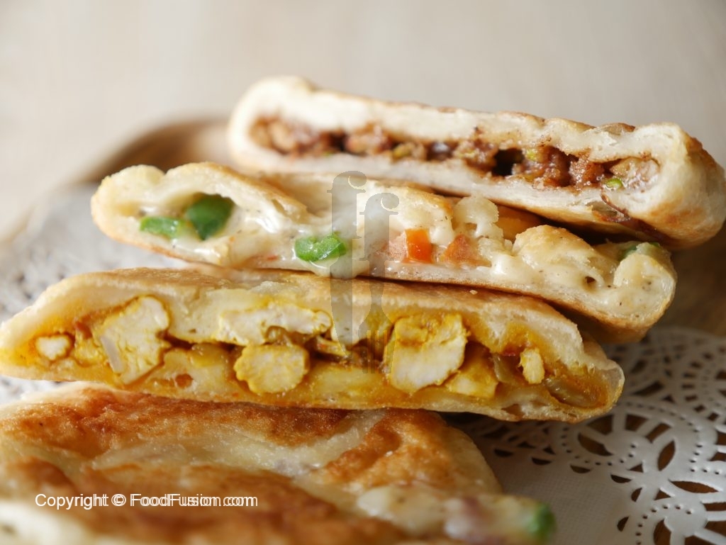 In frying pan,add oil and stuffed filled doughs & press down to form a flat round and fry from both sides.