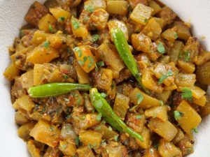 -Hari mirchein aur hara dhania dal ker dhak dein aur halki ancch per 1-2 minute kliya dum per rakh dein.