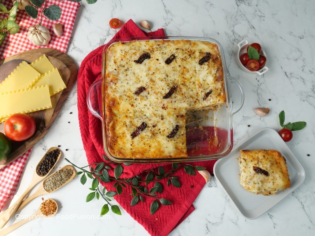 Tuscan Lasagna recipe Caption 1: Glorious Italian-Inspired Tuscan Chicken Lasagna! Tender chicken immersed in a rich sauce smothered in layers of Olper’s Cheese. #OlpersCheese #1Glass1Slice #ToastKaNayaFriend #BreakfastKiJaan #FoodFusion #happycookingtoyou #digitalammi #lasagna
