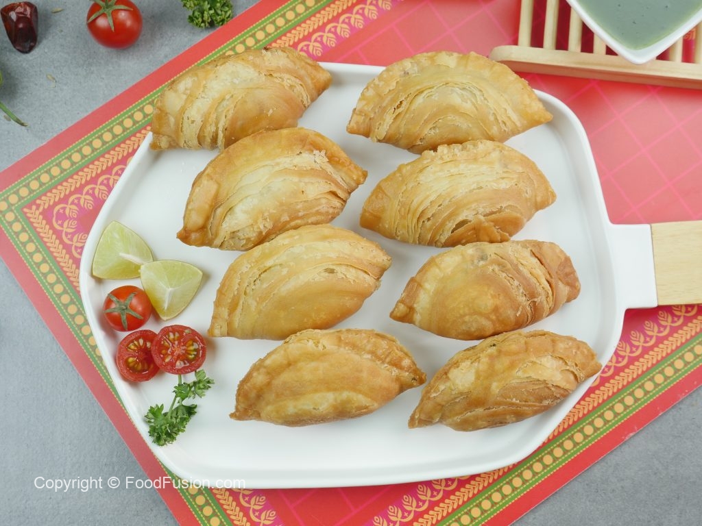 In a wok,heat cooking oil & fry samosa on low flame until golden & crispy.
