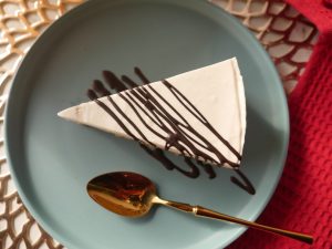 Decorate cheesecake with melted dark chocolate & chocolate buttons then cut into desired slices & serve!